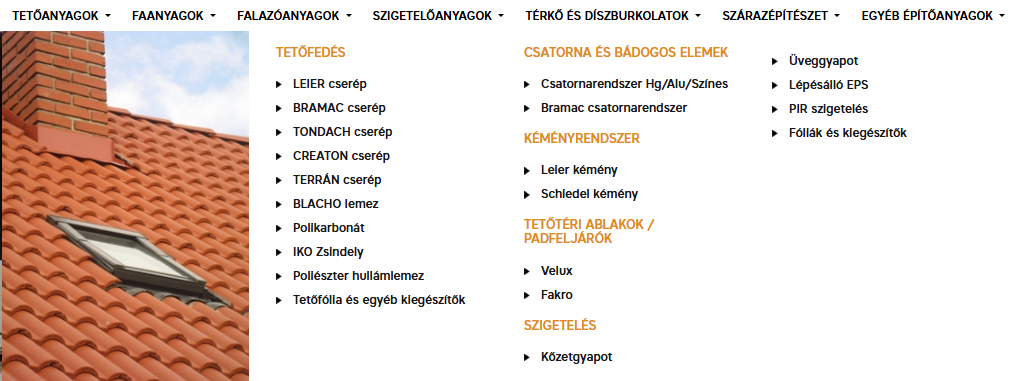Ha még csak ötleteket gyűjt, vagy nem biztos a pontos termék nevében, a kategóriák közötti navigálás a legjobb választás. Átfogó termékcsoportokat hoztunk létre, mint például "Falazóanyagok", "Szigetelés" vagy "Tetőfedés", amelyeken belül további alkategóriák segítik a keresést. Például a "Szigetelés" kategóriában a "Hőszigetelés" vagy "Vízszigetelés" alkategóriát kiválasztva azonnal a releváns termékekhez jut. Ez a felépítés próbálja megakadályozni, hogy elvesszen a részletekben, és biztosítja, hogy minden esetben a megfelelő termékhez jusson el.