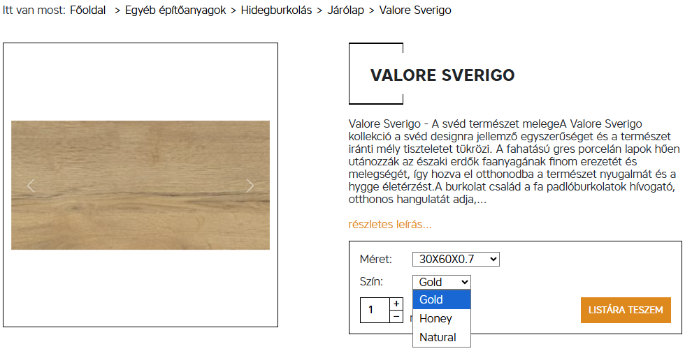 Építkezés vagy felújítás során ritka, hogy egy termékből csak egyfajta változatot használjunk. Ezért a rendszerünk lehetővé teszi,  hogy egy adott termékből is   több különböző opciót adjon a "kosárba" (ajánlatkérési listára).